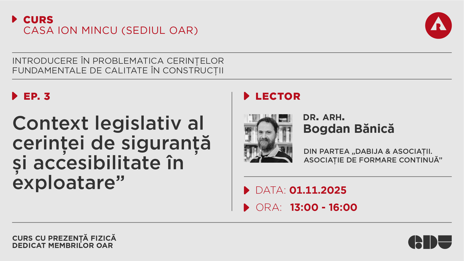 LECTOR DR ARH Bogdan Bănică din partea ”Dabija & Asociații Asociație de Formare continuă” - ”Cu bune și cu rele: exemple de subansambluri existente, comentate”